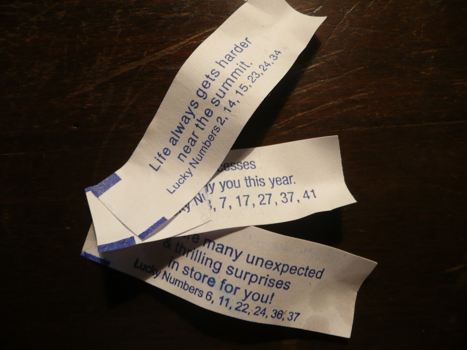 Fortune #1: Many successes will accompany you this year. (For some strange reason I believe it, and because I believe it, I’ve changed the heading of my blog, as some of you may, or may not, have noticed. I hope you noticed.)
