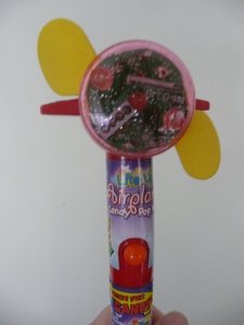 Why? Because there’s more crap…I mean treasures…to add. Like the stuff I found at World Market yesterday while I was wandering around wasting time while the tires on the mommy mobile got rotated next door. I was on the search for solar twinkling garden lights when I ran into four boxed sets of travel luggage stickers. Oh my god, they were cute! I had to have them. And then I saw something else I had to have. A lollipop/fan/light up airplane. Time for a basket. Of course I filled the thing up. With doubles. Of everything. In case I needed to…share. Ya know, for like flight attendant birthday gifts…or something.