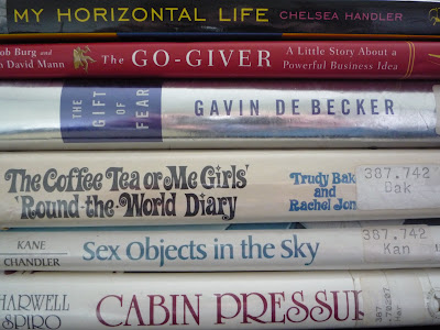 The first book I found on the airplane. Talk about a score! Flight attendants love it when you leave your books behind, so please make sure you bring a good one onboard and forget you left it in the seat back pocket in front of you. The second book I am going to be reviewing (and giving away) on Gadling, along with a post about working in business class. The third book is a book I’ve already read, and love, and will discuss on Gadling, as well. I highly recommend the book to you, and any woman you may know. It’s about trusting your sixth sense. The last three are books about my profession, books I have not read, but have always wanted to read. I do hope they inspire me to finish my book, SKYDOLL, a book I should be working on right now!
