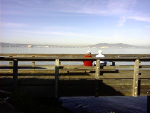 I had just landed in San Francisco and was on a quick run when I spotted this adorable elderly couple just sitting on a bench looking out over the water watching the airplanes taking off and landing in San Francisco