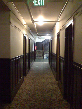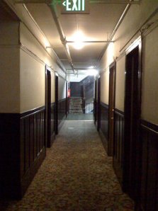 I always clip my curtains closed so the light will not shine through and wake me up. In the middle of the night it was like someone used their hands to push both curtains back forcefully. I was lying there freaking out! Another time I woke up to find the decorative bed quilt folded neatly in the corner of the room. I don’t fold at home nor am I good at it, so I know I didn’t do it in my sleep. The third time we did a seance. We asked for a sign and all the elevators opened simultaneously. We jumped up and ran! – Lynne Smith