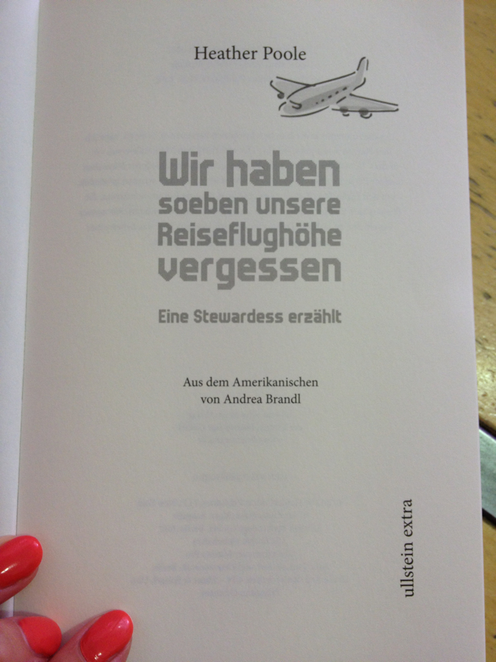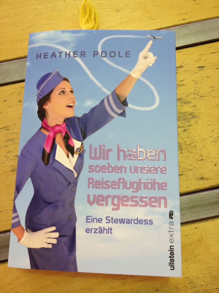 Yesterday I received a very nice email from a soon to be Lufthansa flight attendant named Yasmin-Marie. She wanted to let me know she’s reading my book, “A flight attendant tells…” in German. I asked her to email a photograph of the cover. Two seconds later the photographs posted here arrived. I was thrilled.