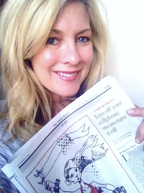 My first Op-Ed. Los Angeles Times, A25. They changed the title from “flying the less-friendly skies” to “Turn off your cell phone means turn it off” in the paper. I liked the original one better. It’s more in the spirit of the piece. And yeah, the handcuffs got cut out.