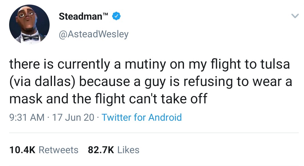 United, for instance, plans to “enforce” the new policy by having a flight attendant remind passengers who aren’t wearing masks to wear one in flight, as if all the passengers wearing masks around them isn’t already a reminder that something strange like A PANDEMIC is going on.