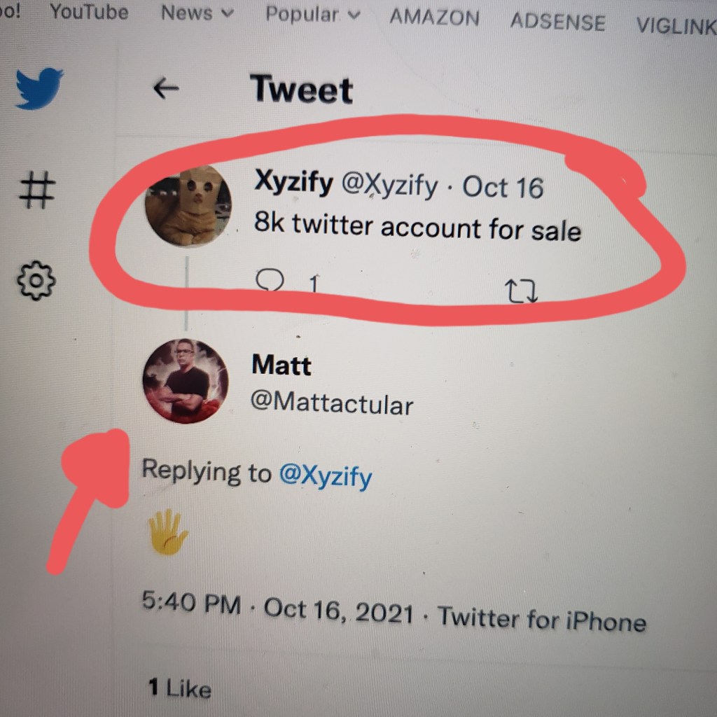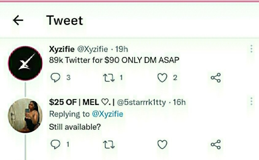 Same account @xyzify tried to sell my 89K followers for $90 yesterday. A different but similar account @xyzifie found an interested buyer.